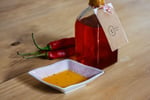 The Sichuan spicy oil A Mellow Sheng specialty, made with a special blend of spices and orange extra virgin olive oil. It's a medium-spicy and aromatic oil with layers of flavors.